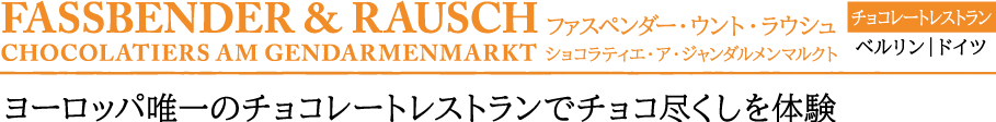 1863年創業の、老舗チョコレートブランド「ファスベンダー・ウント・ラウシュ」が、2006年にオープンしたチョコレートレストラン。チョコレート色で統一された店内では、ウィークデーの12時から17時まで、約20種類のチョコレート料理を楽しむことができます。チョコレートといってもお菓子ではなく、スープ、サラダ、パスタなどに、8カ国の契約農園から届くカカオがアレンジされているのです。例えば、生姜の風味が利いたサツマイモのスープ(6.50ユーロ)には、ほろ苦いエクアドル産のチョコレートのソースが。カカオを練りこんだタリアテッレ(9.50ユーロ)もあります。カカオ100%のボールを、スパイス代わりに削ってかける演出もオシャレです。1階では、同ブランドのチョコレートも販売。チョコレートでできたベルリン名所のオブジェも必見です。